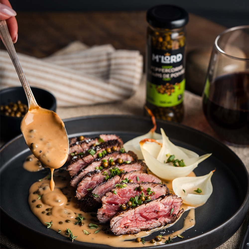 Les poivres verts M’Lord offrent une chaleur douce et aromatique qui rehausse les sauces crémeuses sans dominer les saveurs. Un ingrédient idéal pour une cuisine élégante, simple et festive.